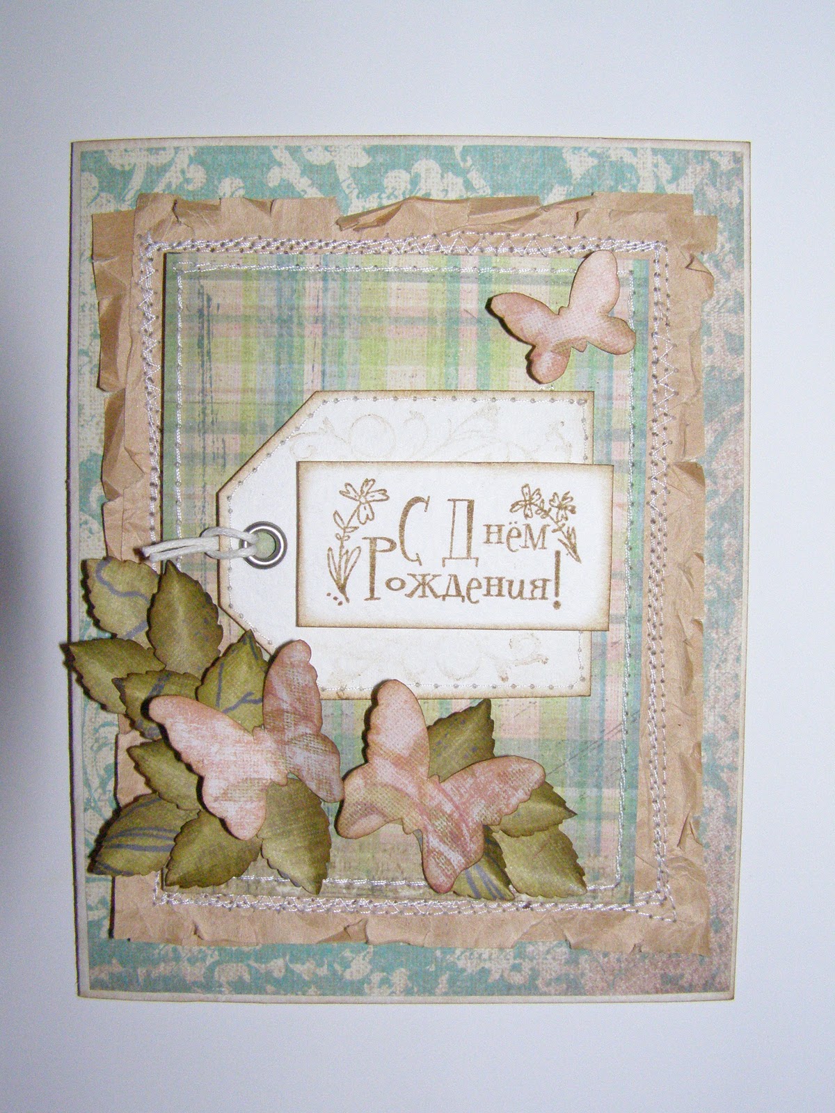 Мне не очень нравится сама открытка, но если подумать над дизайном и выбрать другую ткань, результат будет замечательным. Пока пусть лежит, дарить её не буду, может что то переделаю позже.