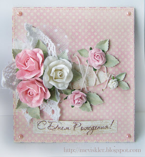 В открыточке использована бумага К энд Компани, кружево, цветочки и дырокольные листочки (Рифма)))